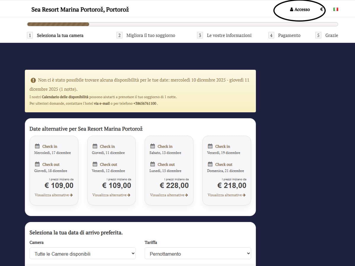 Una volta effettuato l’accesso al tuo account tramite la nostra piattaforma di prenotazione Cubilis, vedrai automaticamente un listino speciale con la tua tariffa esclusiva riservata ai membri. Non è necessario inserire alcun codice — ti basta essere loggato e le tariffe scontate saranno visibili durante la ricerca della disponibilità.