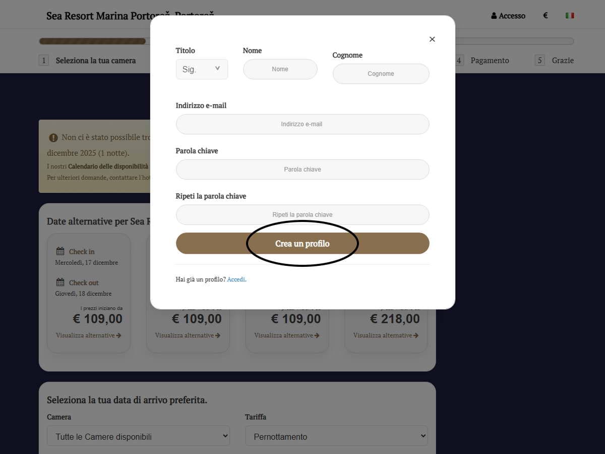 Una volta creato con successo il tuo account, riceverai un’e-mail di conferma con le istruzioni per completare l’iscrizione. Se non ricevi questa e-mail, contattaci senza esitazione per assistenza all’indirizzo reception@marinap.si